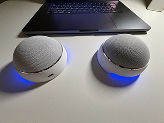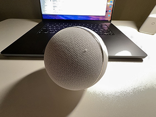 重ねると球体になるスピーカーです。分けて使うと空間でなっているように聞こえます。