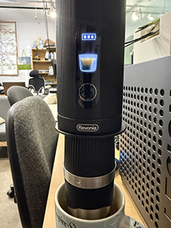豆から入れられる充電式のコーヒーメーカー来ました。1杯ずつ入れられます。